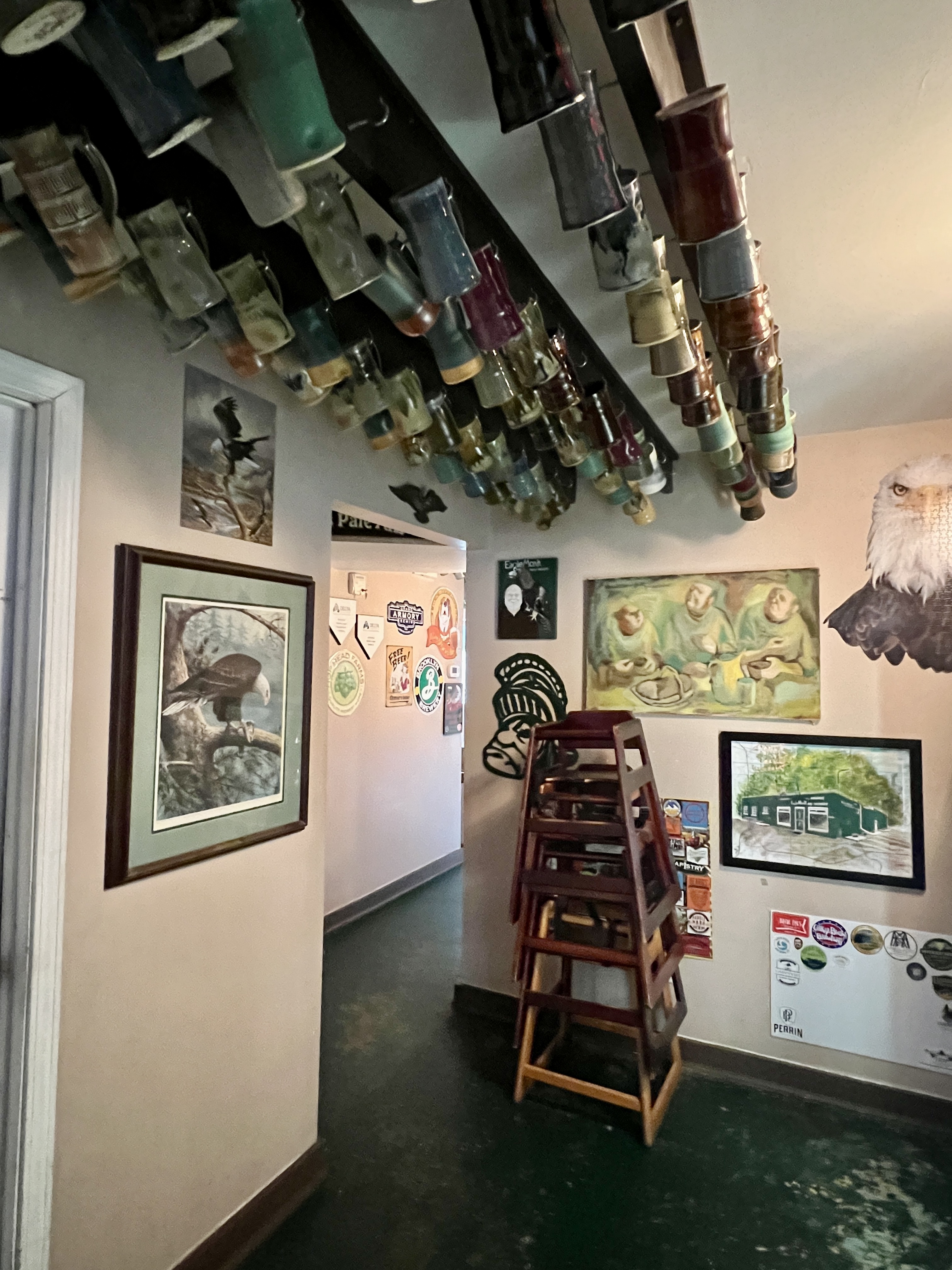 2,453… hardly a number to sneeze at. Impressive when you consider that it is the number of mug club mugs that currently hang on the ceiling and walls of EagleMonk Pub and Brewery in Lansing, Michigan.